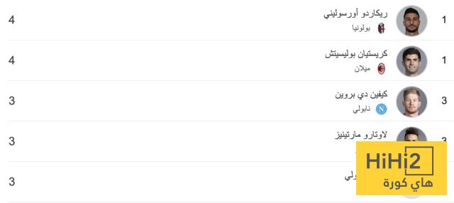 وحل ريكاردو أورسوليني مهاجم بولونيا، وكريستيان بوليسيتش في المركز الأول بجدول ترتيب الهدافين بتسجيل كلًا منهما أربعة أهداف.
