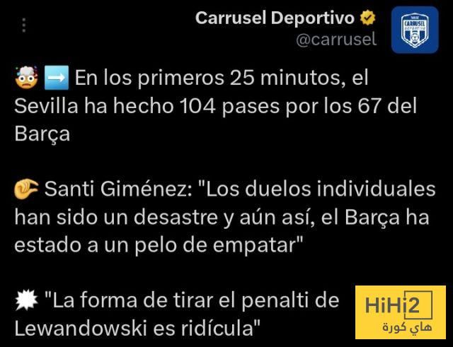 “في أول 25 دقيقة، إشبيلية مرر 104 تمريرة مقابل 67 لبرشلونة”.